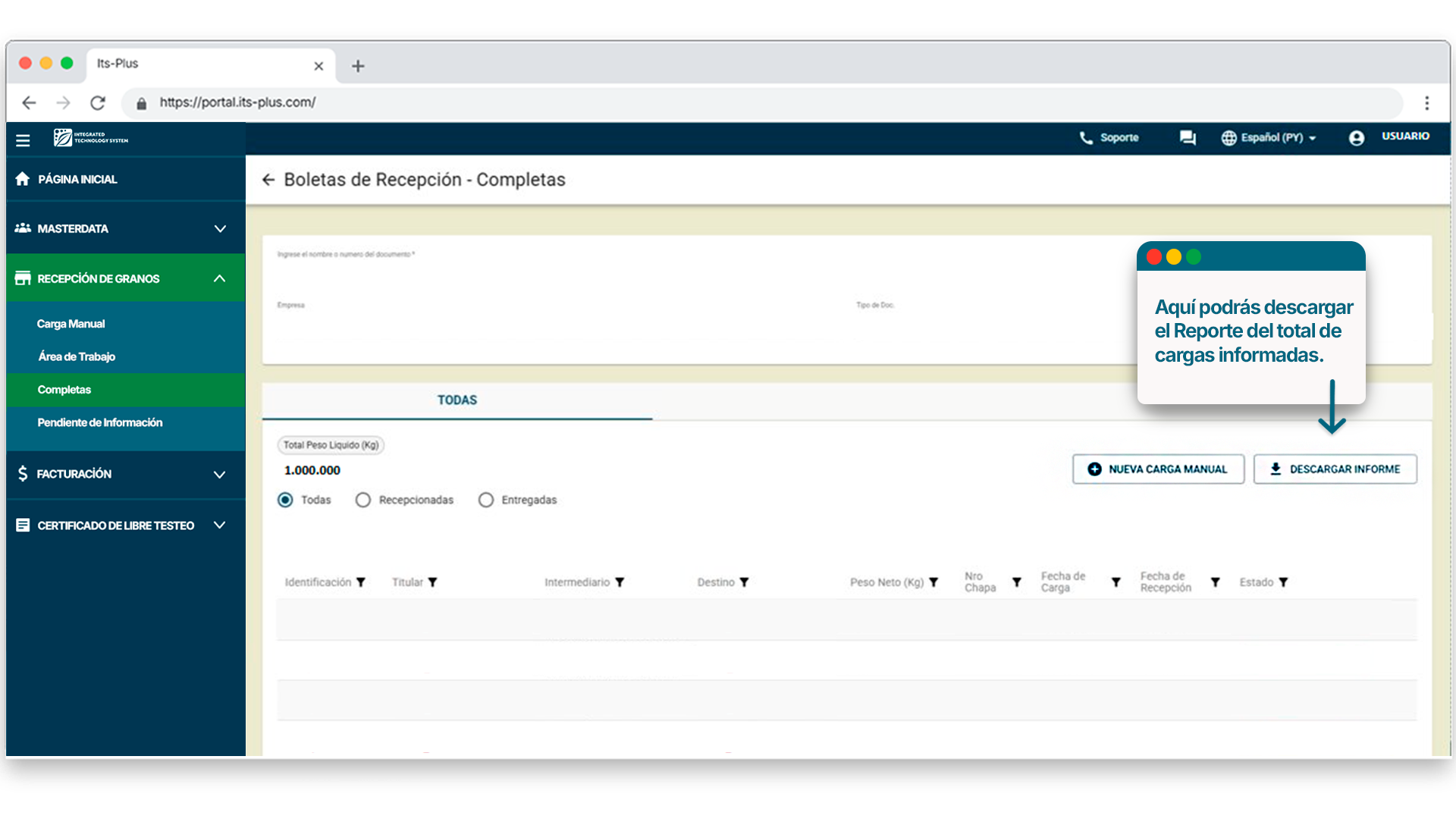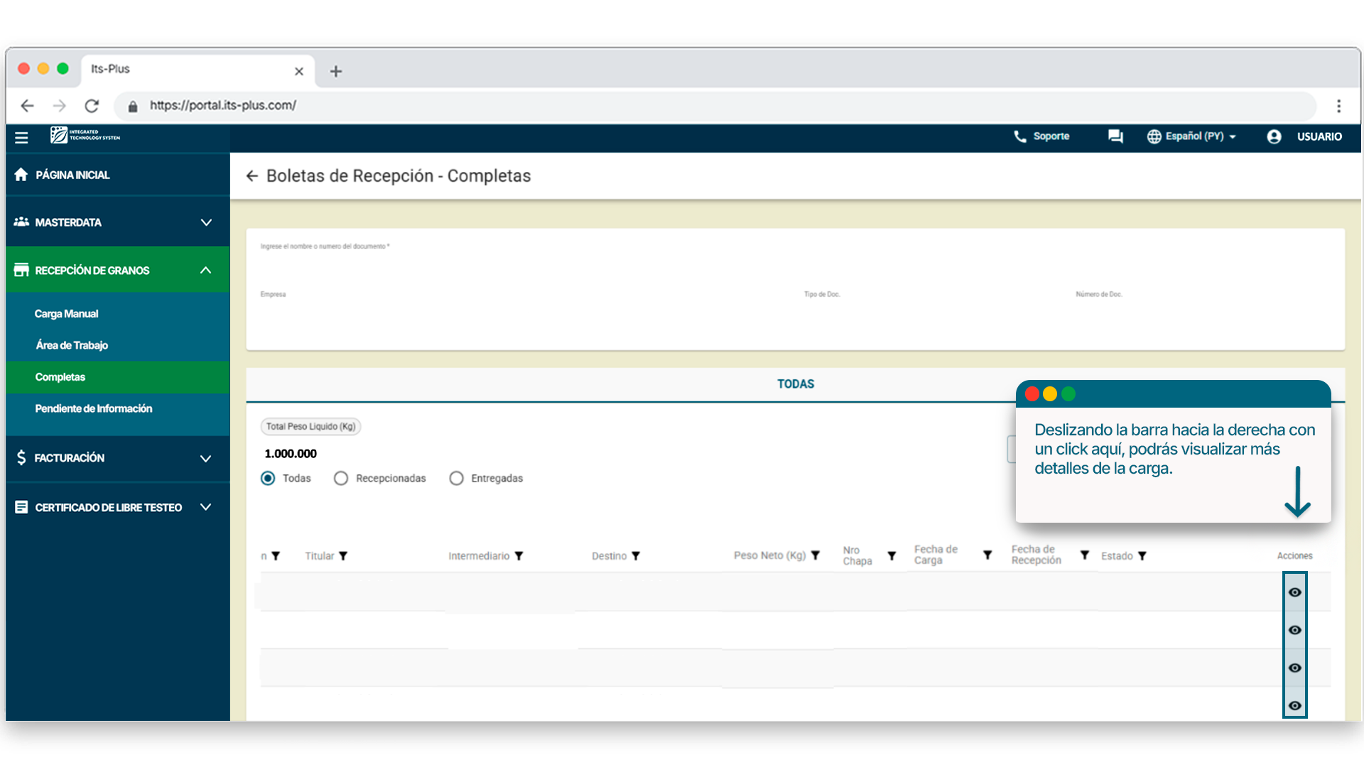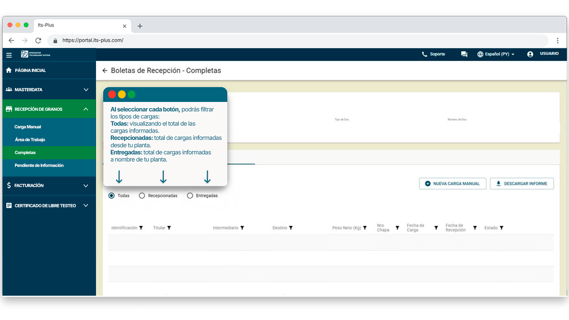 ¡Recuerda que puedes visualizar el detalle de cada una de las cargas en la bandeja de completas!
