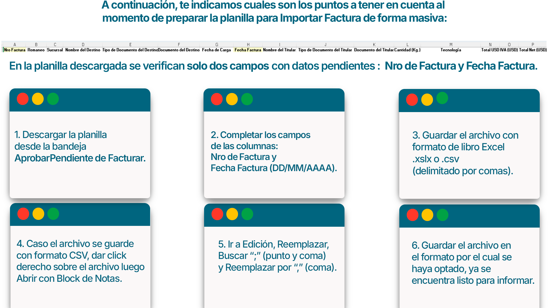 A partir de ahora ya sabrás como ver todos los detalles de cargas en estado Pendiente de Facturar y como informarlas de forma masiva.