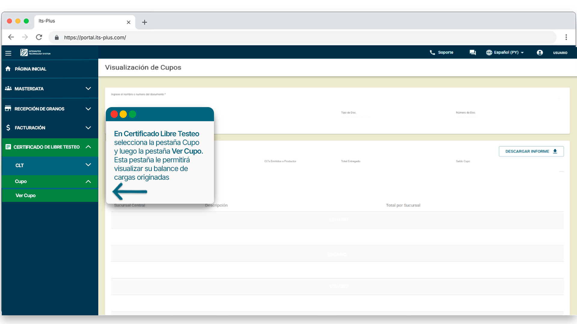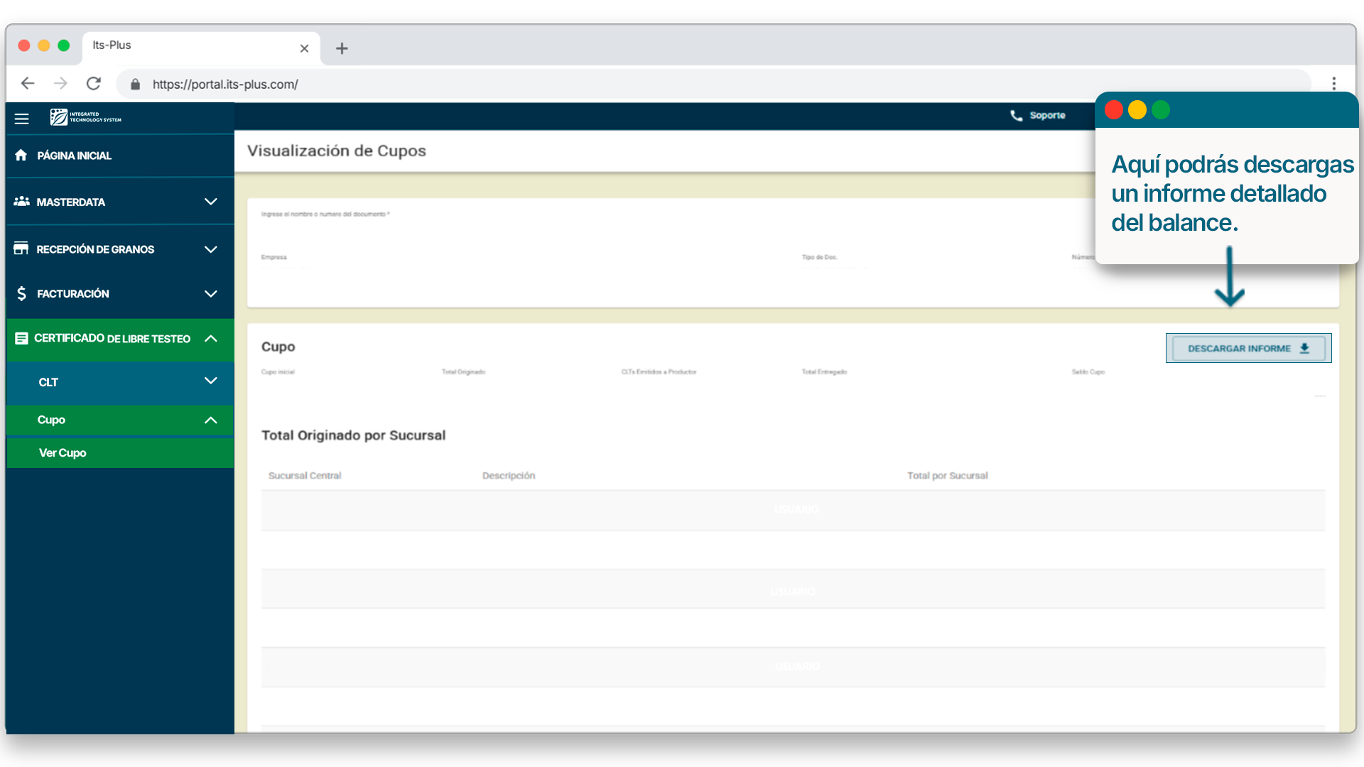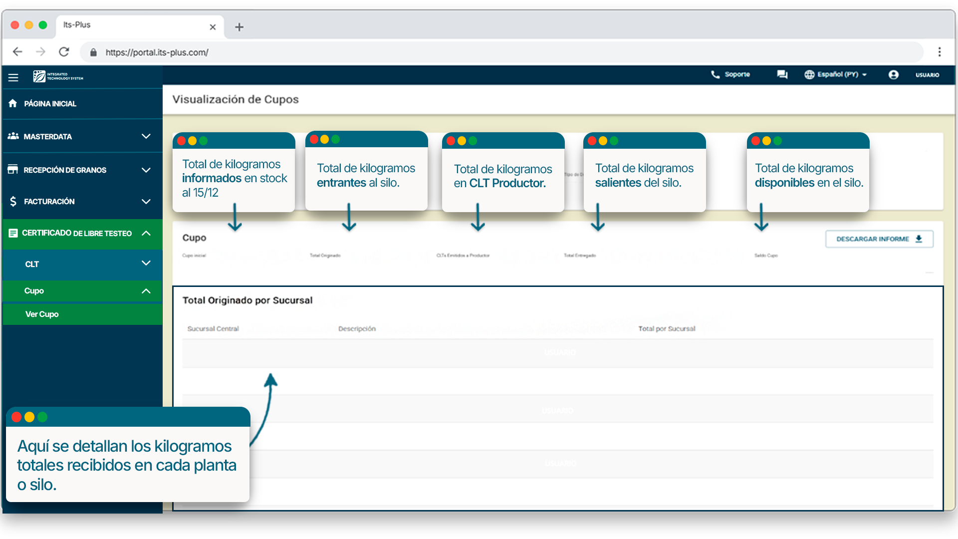 Te mostraremos como visualizar el cupo de tu silo y como descargar un informe del mismo.