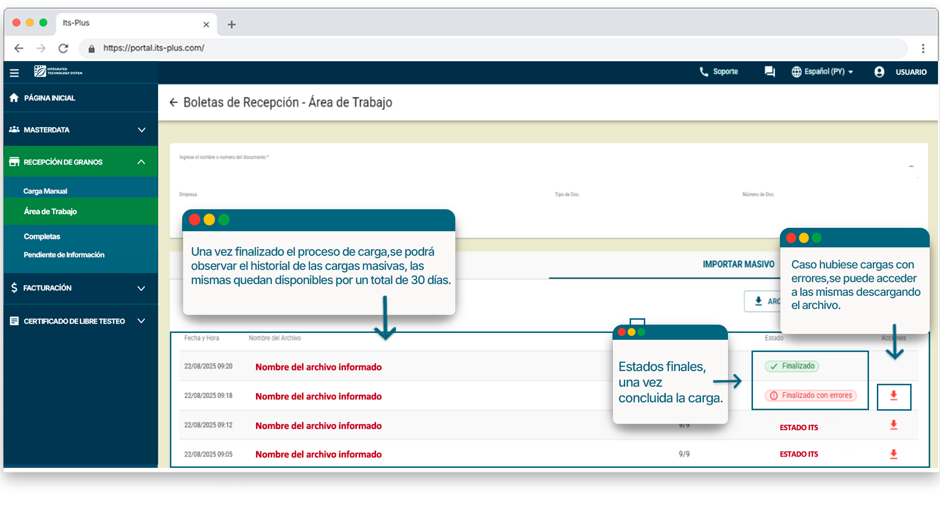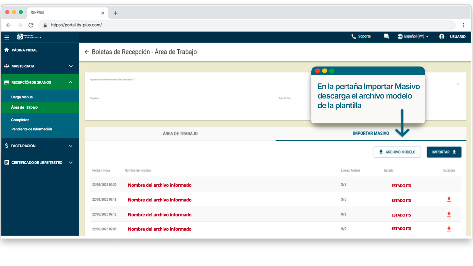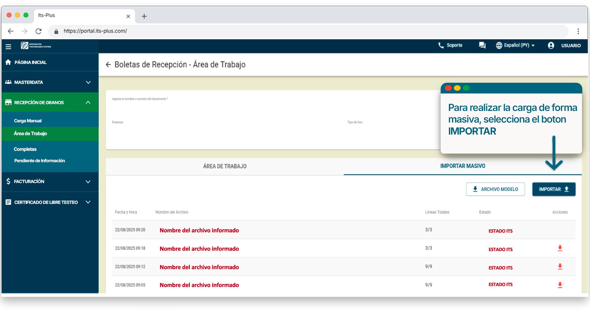 Te mostraremos como cargar de forma masiva las boletas de recepción.