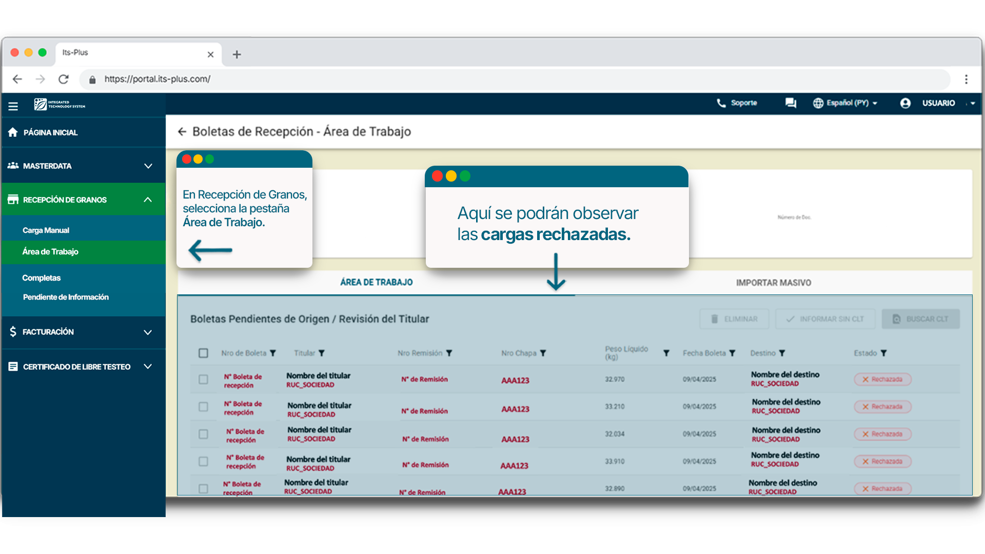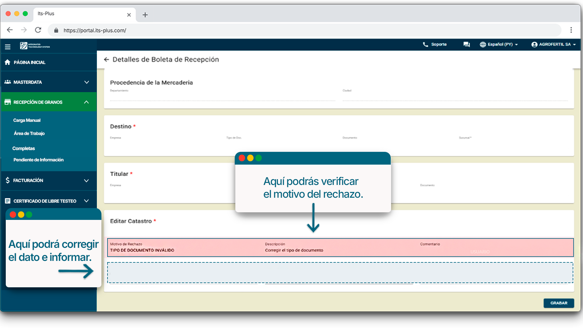 Te mostraremos como gestionar e informar las boletas de recepción que se encuentran en el estado de “Rechazada” desde el área de trabajo.