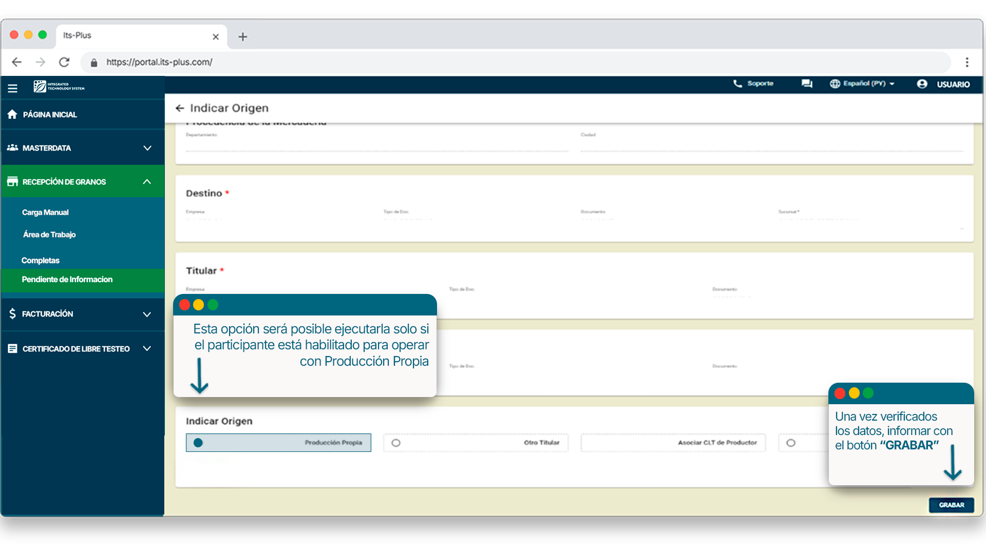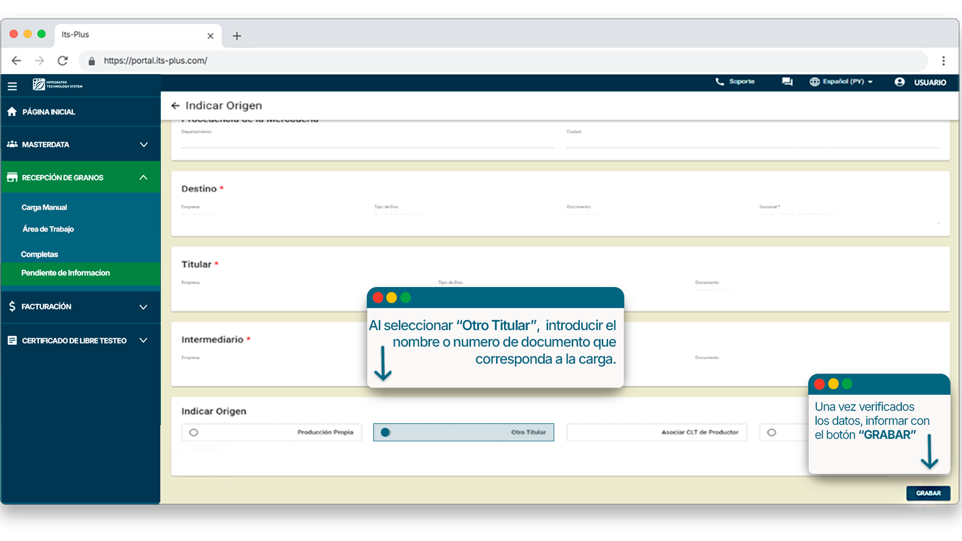 Te mostraremos como indicar origen de forma manual a todas las cargas presentes en la Bandeja Pendiente de Información.